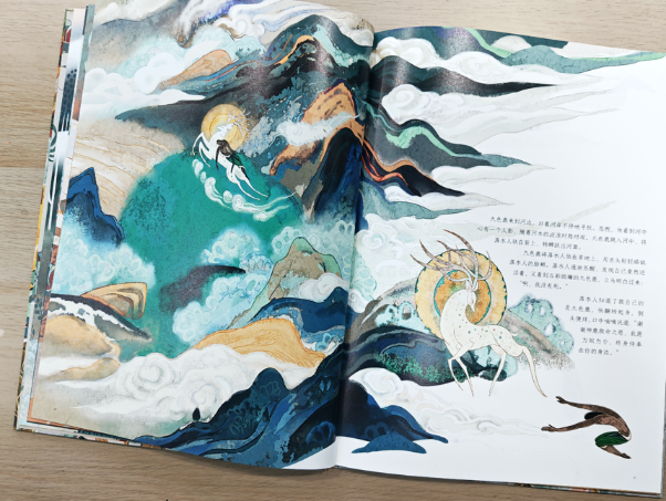 这次应中国少年儿童出版社的邀请,谭盾与插画师尧立、演员马伊琍合作,让九色鹿故事以全新的“音画绘本”形式呈现。