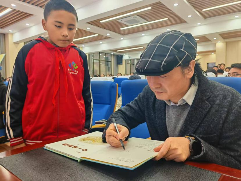 为了进一步鼓励学生们保持阅读与写作的热情,舒辉波现场为《十一枚邮票》签名,并将图书逐一赠予学生,让文学的温暖留在孩子们心中。