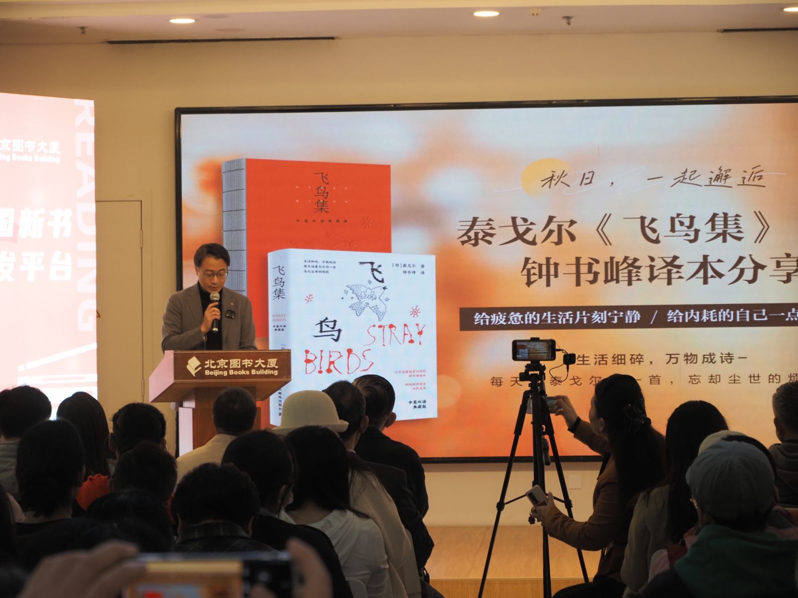 2025年10月26日上午,由人民邮电出版社与总裁读书会联合主办的“秋日,一起邂逅”泰戈尔《飞鸟集》钟书峰译本分享会,在北京图书大厦一层共享空间隆重举行。活动现场座无虚席,不少读者驻足聆听,在诗意的海洋中感受泰戈尔作品的永恒魅力。