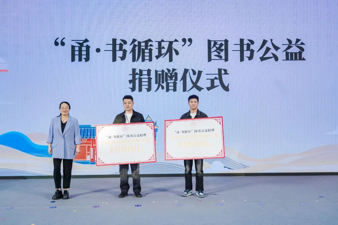 活动现场举行的“甬·书循环”图书公益捐赠仪式,为整场活动增添了温暖的底色。项目发起单位代表向集卡司机、快递小哥等新就业群体代表赠送经典读物,让阅读的真正意义在关爱与分享中得到升华。