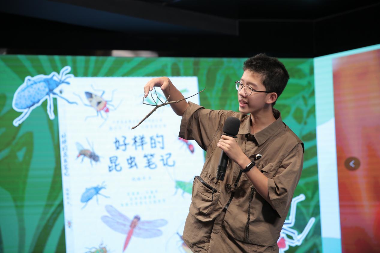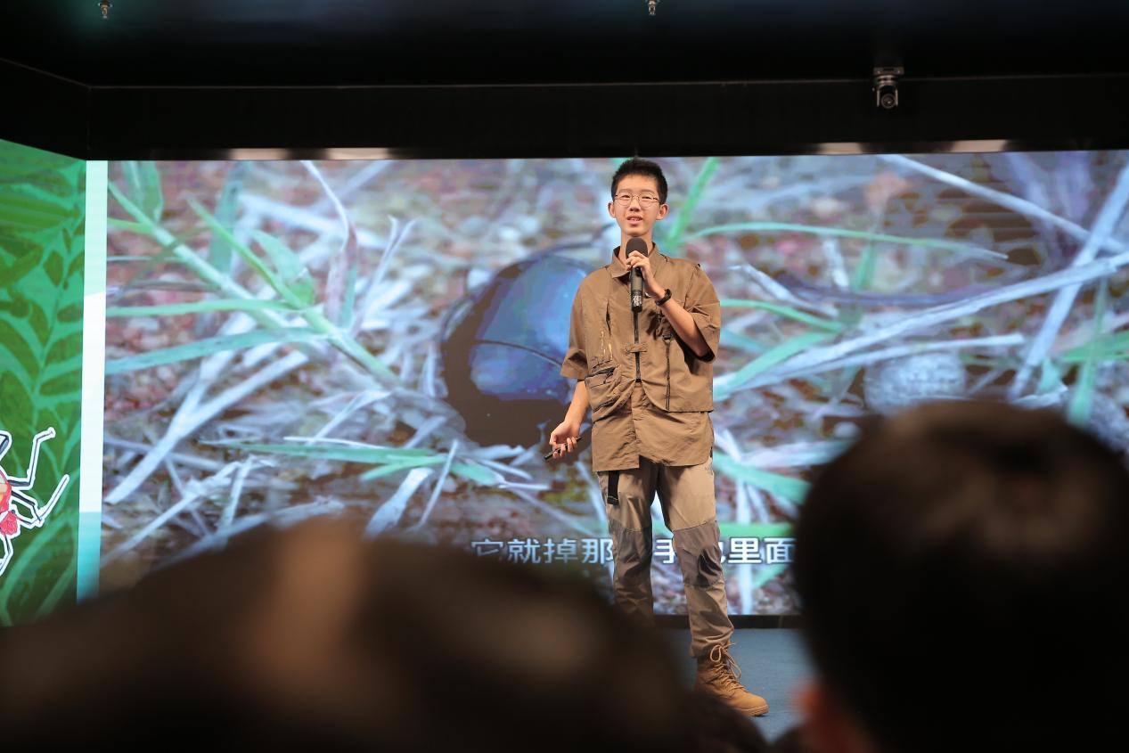 活动中,倪皓洋同学以“昆虫世界的奇妙之旅”为主题,分享了他从观察蚂蚁搬家开始,一步步深入昆虫世界,直至发现新物种“皓洋桂齐蛛”的探虫经历。他用生动有趣的语言和精彩的影像资料,不仅展示了昆虫世界的奥秘,更真诚呼吁小伙伴们从身边做起,成为一名生态保护的积极行动者。