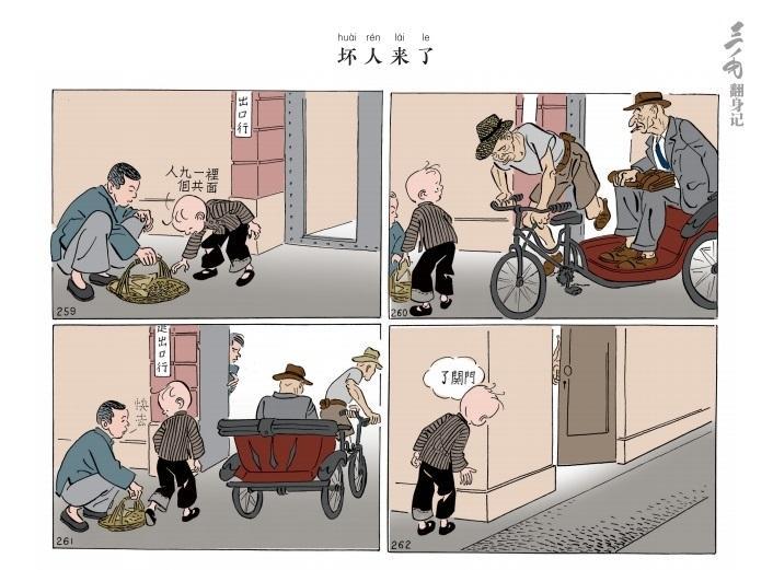 1949年5月27日,上海宣告解放。张乐平用画笔还原历史,细腻描绘了三毛从苦难孤儿到新中国小主人的命运转折,创作了《三毛翻身记》与《三毛迎解放》。这两部作品成为继《三毛从军记》《三毛流浪记》之后的又两部情节连贯、故事完整的连环漫画佳作。