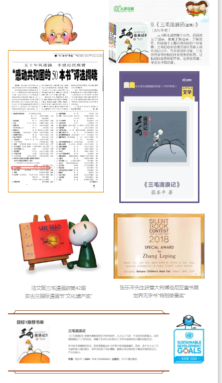 在六十六年深耕三毛漫画出版事业中,少儿社成功构建起涵盖黑白版、彩图注音版、彩图版、彩绘版等多版本、多层次三毛图书出版体系,力求覆盖不同年龄段、满足多元阅读需求。出版的三毛漫画图书不仅荣获“感动共和国的50本书”称号,入选国家教育部阅读指导书目,多次获《人民日报》官方微博、中央电视台推荐;还荣获法国安古兰国际漫画节“文化遗产奖”、意大利博洛尼亚童书展世界无字书“特别荣誉奖”,入选联合国可持续发展目标图书俱乐部推荐书单。