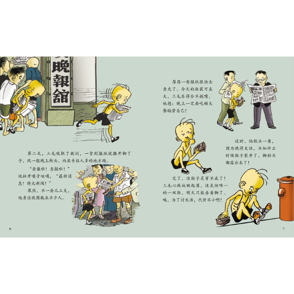 张乐平擅长以“画”讲故事,他曾说,“我想尽可能减少借助文字的帮助,要让读者从我的画笔带来的线条去知道他所要知道的。”他以简洁流畅的笔触,生动勾勒出三毛与伙伴嬉戏、上学、与家人相处的日常场景。作品充满生活的气息与温和的幽默,让读者在会心一笑中,引发对儿童教育、家庭伦理与社会现实的思考。
