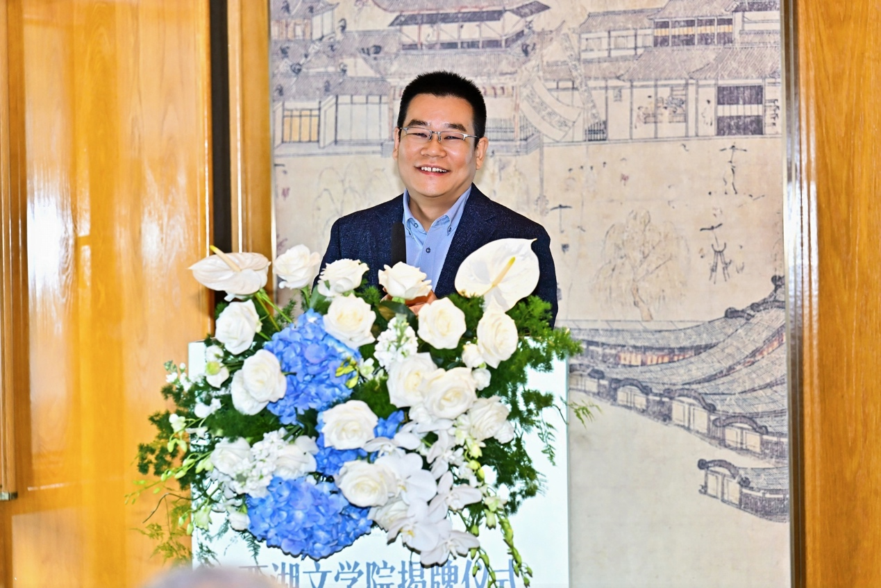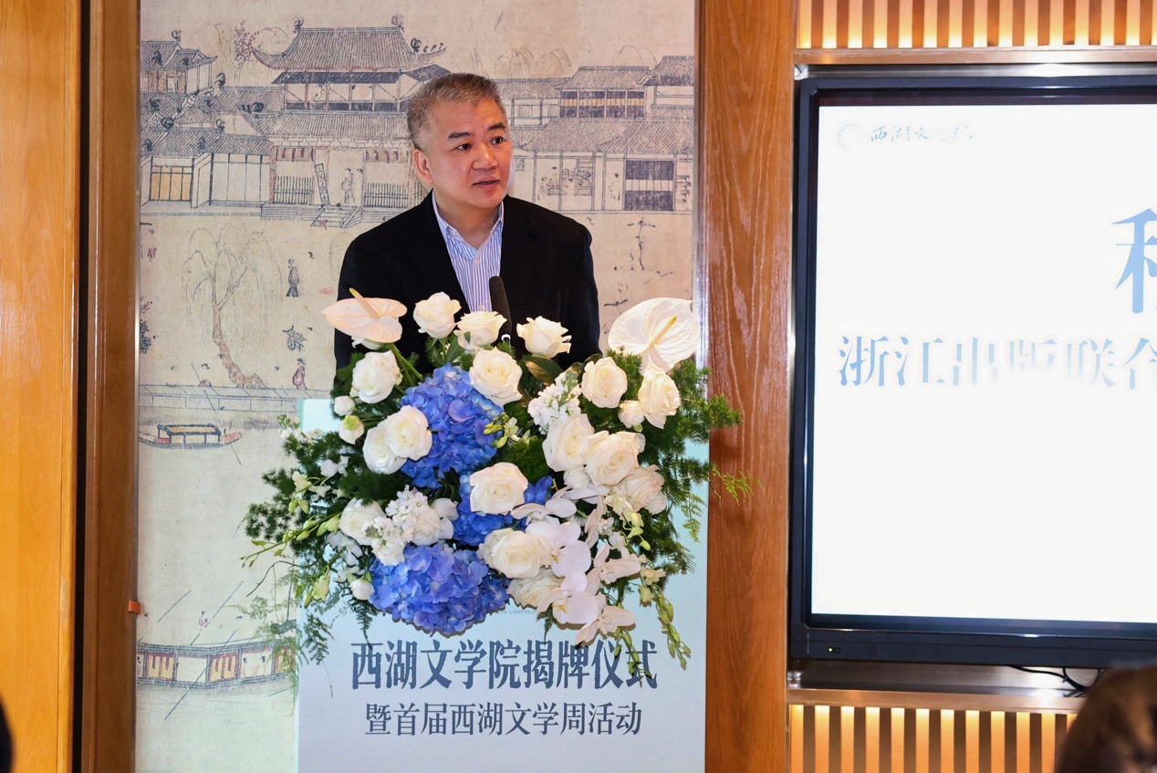 揭牌仪式由浙江出版联合集团总经理、总编辑、党委副书记芮宏主持。多位领导、嘉宾致辞。俞慧敏指出,在新时期文化越来越成为浙江高质量发展建设共同富裕示范区的强劲动力,西湖文学院整合各方资源,将成为文学创作者、评论者、爱好者、出版者的家园,为共筑新时代浙江文学高地作出更大贡献。