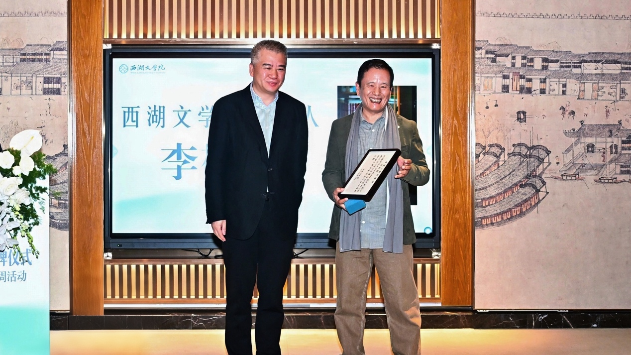 浙江出版联合集团董事长、党委书记程为民为李敬泽颁发西湖文学院召集人聘书