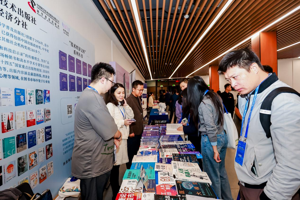 会场外,中国科学技术出版社精心布置的精品图书展区人头攒动、气氛热烈。《技术经济文库》作为重点展陈内容,与技术经济分社推出的其他市场畅销书一同亮相,吸引了众多与会专家学者驻足翻阅、咨询交流。不少读者表示,文库选题紧扣时代脉搏、内容扎实厚重,兼具理论深度与实践价值。