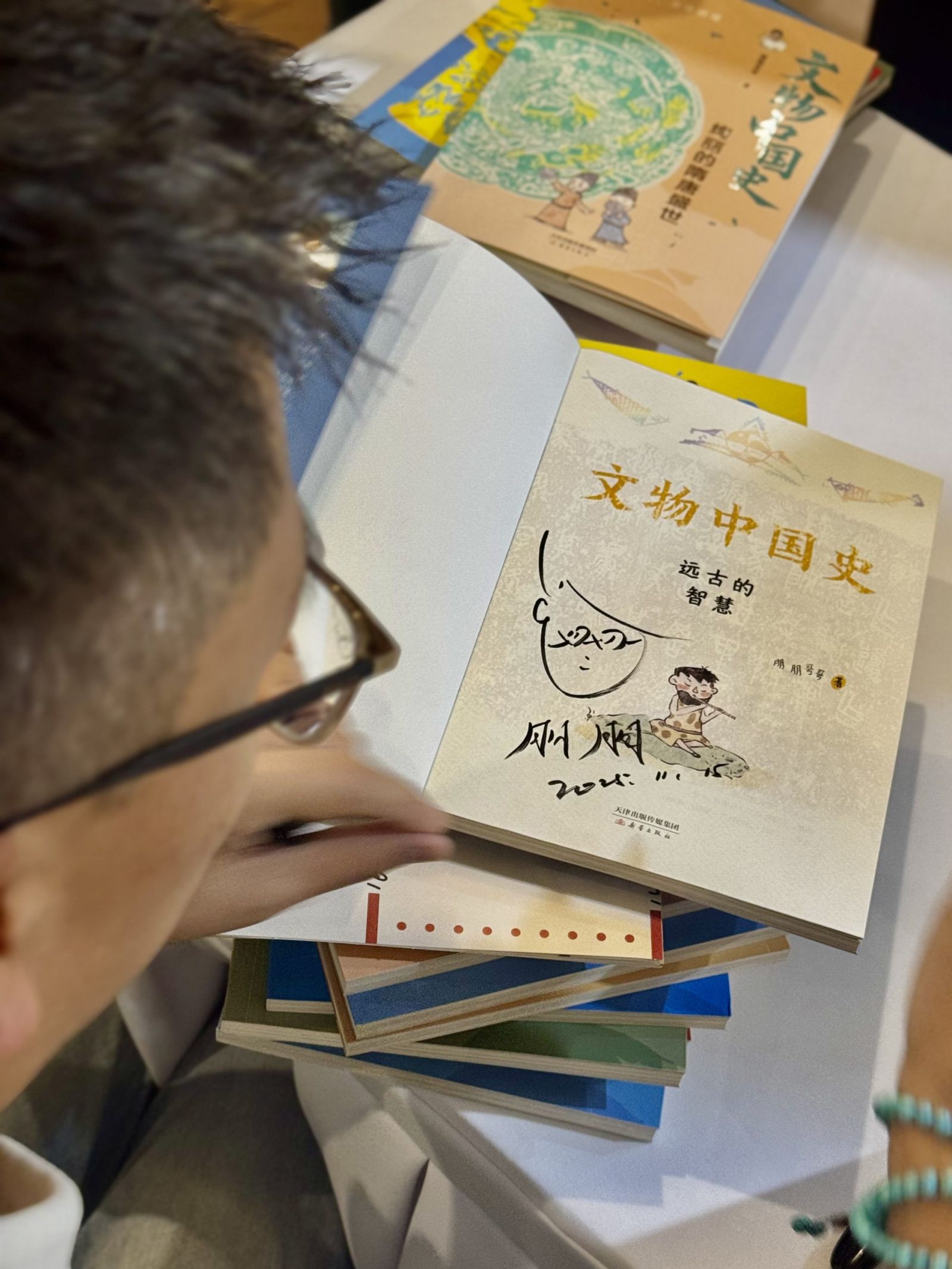 活动的最后,本书作者、知名博物馆教育专家朋朋哥哥与在场的观众分享了他创作的初心。“我们选择的每一件文物,都是一个时代的印记。”朋朋哥哥说,“引导孩子从一件青铜器、一片陶瓦中看到古人的生活与智慧,比单纯背诵历史年代更有趣,也更能培养他们对民族文化的认同感。”他表示,希望这套图书能让孩子们了解文物的有趣,了解古人的精彩生活,串起古代历史的脉络。同时,也为孩子们搭建一座桥梁,将博物馆中静默的文物转化为孩子们能听懂、爱听的历史故事。当孩子们从“被动记忆”转向“主动探索”,当厚重的中华文明通过一件件跨越千年的物件展现出来,我们便在孩子们心中种下了一颗文化传承的种子,之后一定会生根发芽,长成参天大树。