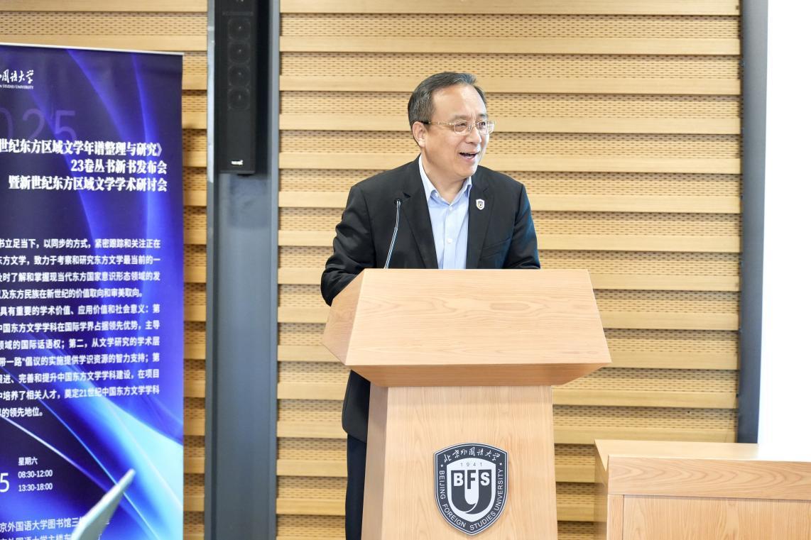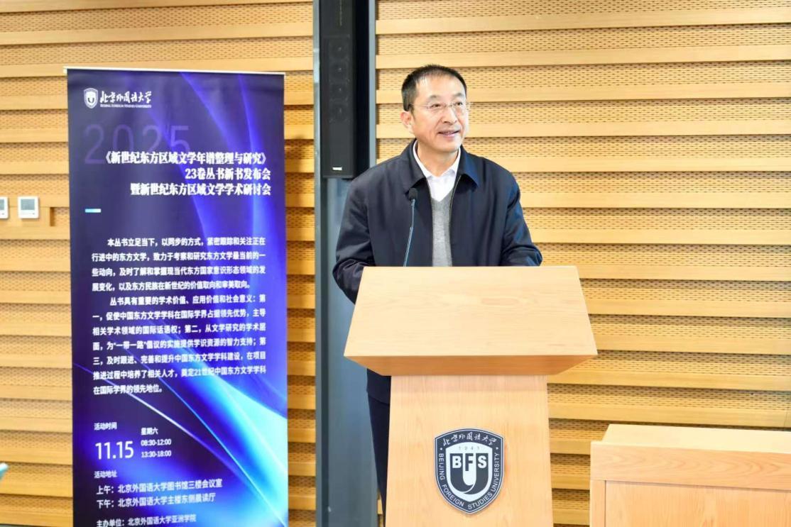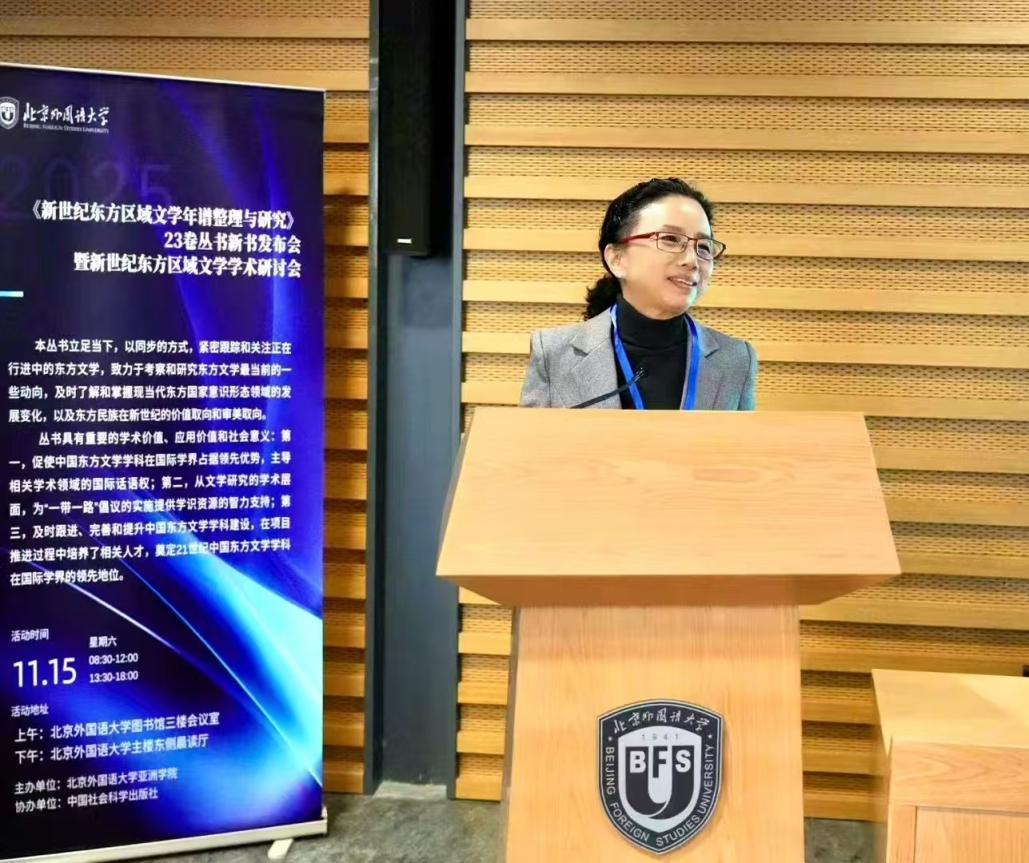2025年11月15日,由北京外国语大学亚洲学院主办、中国社会科学出版社协办的“新世纪东⽅区域⽂学年谱整理与研究2000—2020”23卷丛书新书发布会暨新世纪东方区域文学学术研讨会在京成功举办。丛书由北京外国语大学穆宏燕教授担任总主编,中国社会科学出版社出版发行,分为新世纪东方区域文学年谱整理(20卷)和东方区域文学研究(3卷)两部分,为国家社科基金重大招标项目、国家出版基金项目、北京外国语大学“双一流”重大标志性项目成果。自立项到发布,丛书历时八年,参与学者114名,广泛收集了东方各区域文学的第一手资料,在深入研究各区域文学与政治经济和社会宗教文化互动关系的基础上,总结归纳出东方区域文学在21世纪前20年的发展趋势和总体特征。