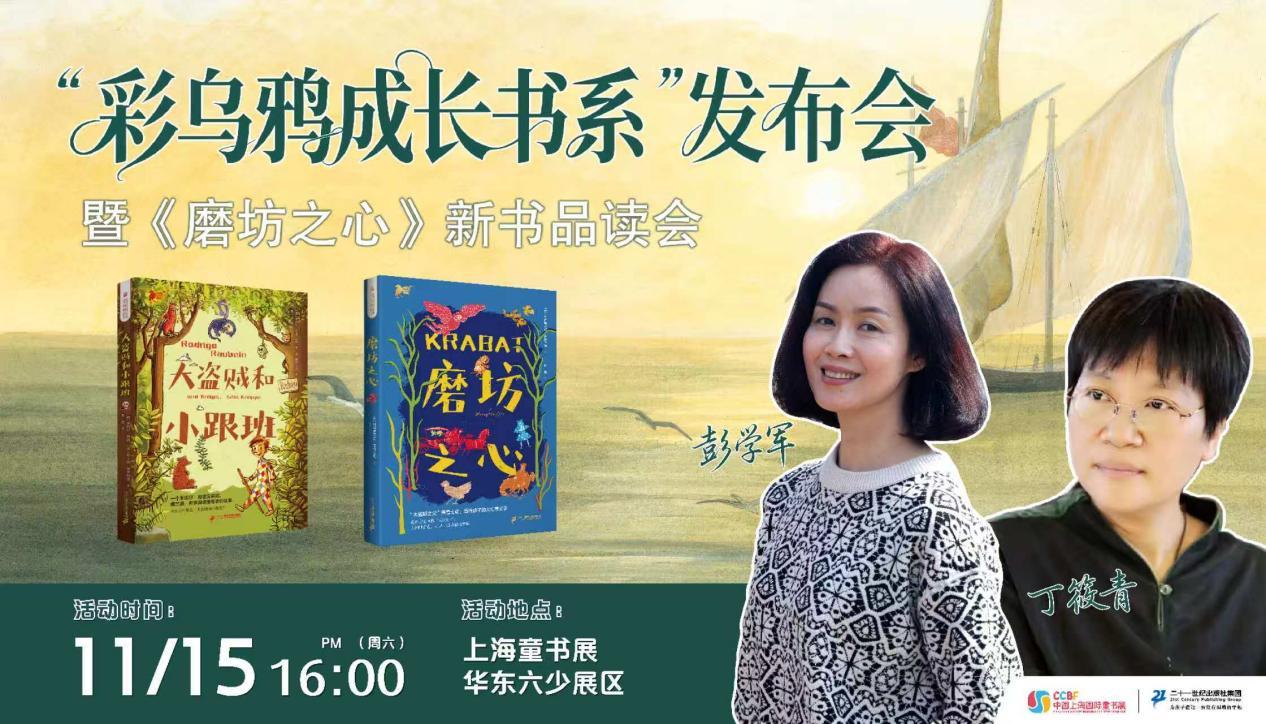 在2025年11月15日上海童书展现场,二十一世纪出版社为该系列作品举办了一场别出机杼的活动——“‘彩乌鸦成长书系’发布会 暨《磨坊之心》新书品读会”,此次活动邀请到的著名儿童文学作家、“彩乌鸦”策划编辑彭学军和一阅书院联合发起人、特级教师丁筱青,与在场众多教育者、爱书人和儿童读者共同庆祝新系列出版。