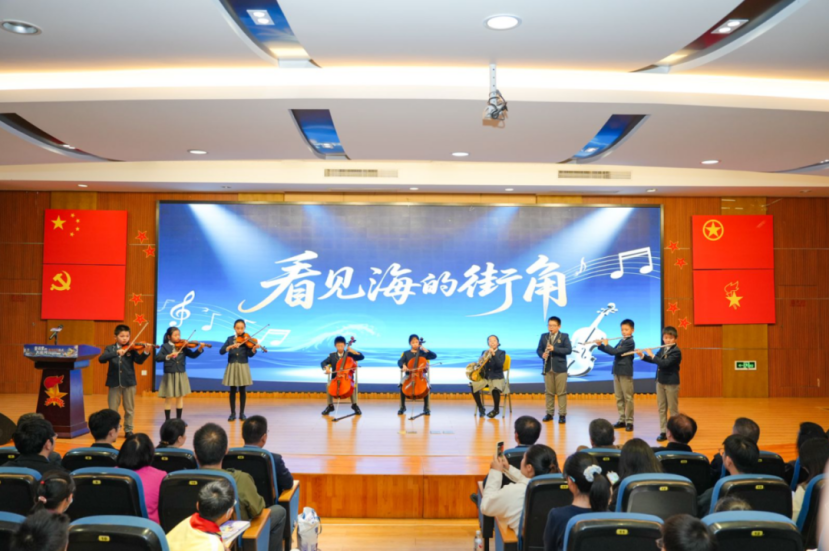 活动伊始,杭州市育才京杭小学的学子们活力登场,管弦乐演奏《看见海的街角》为活动奠定温馨基调。