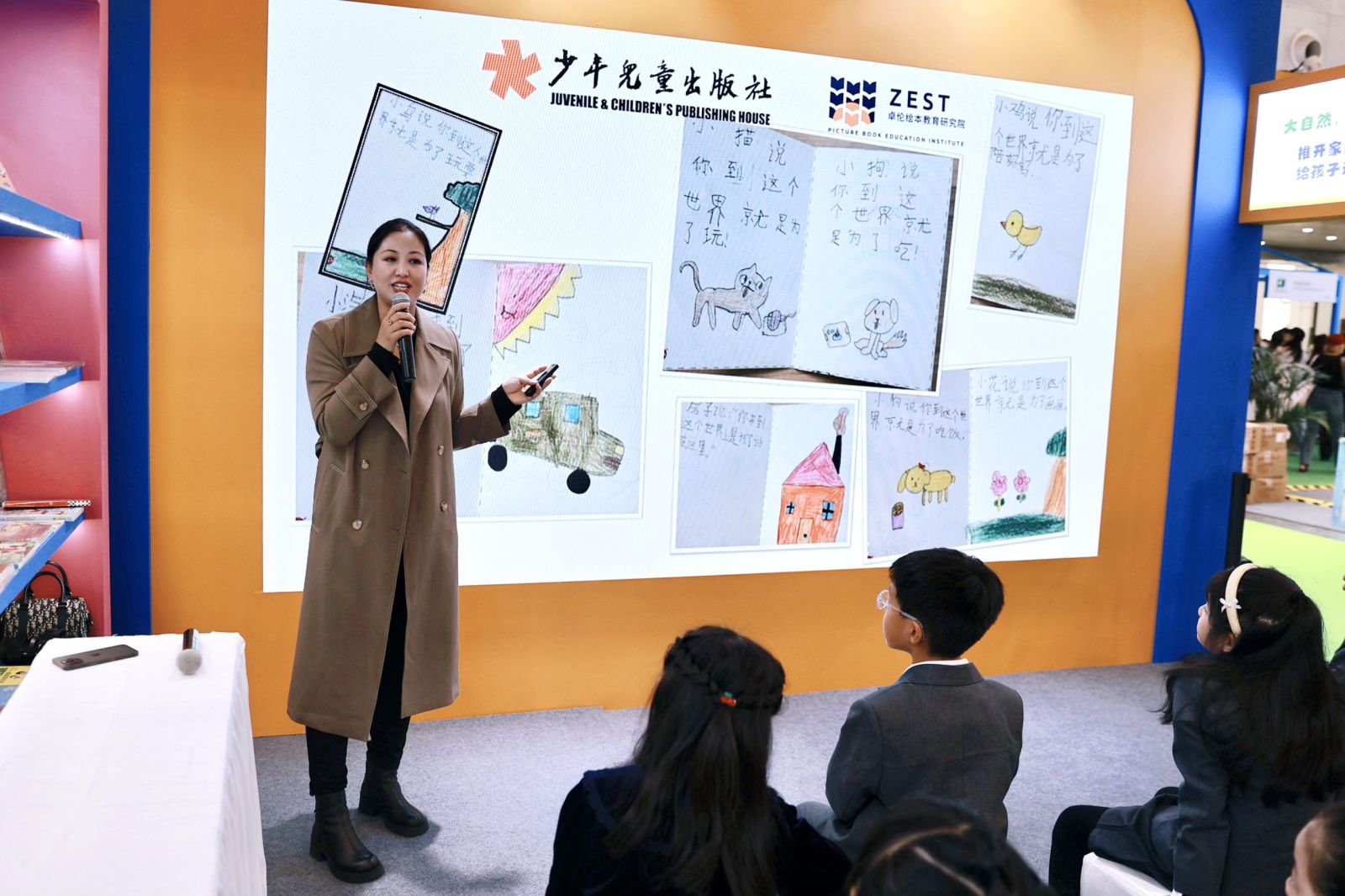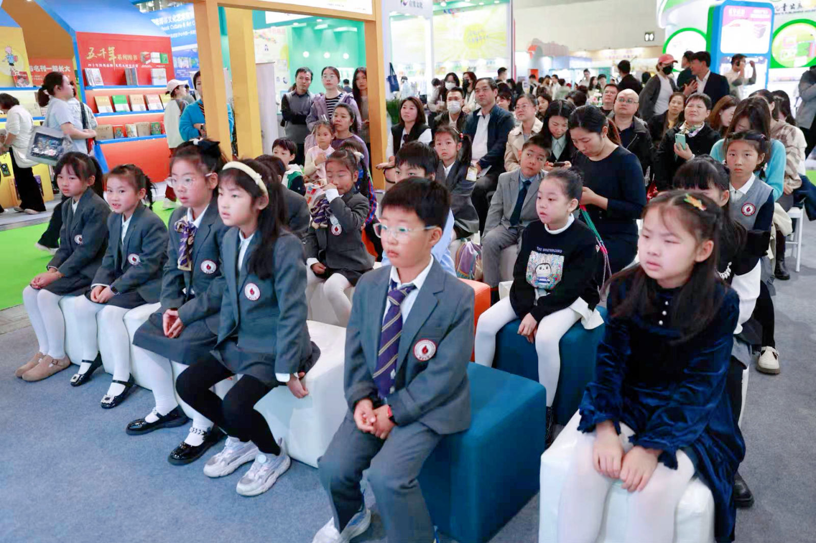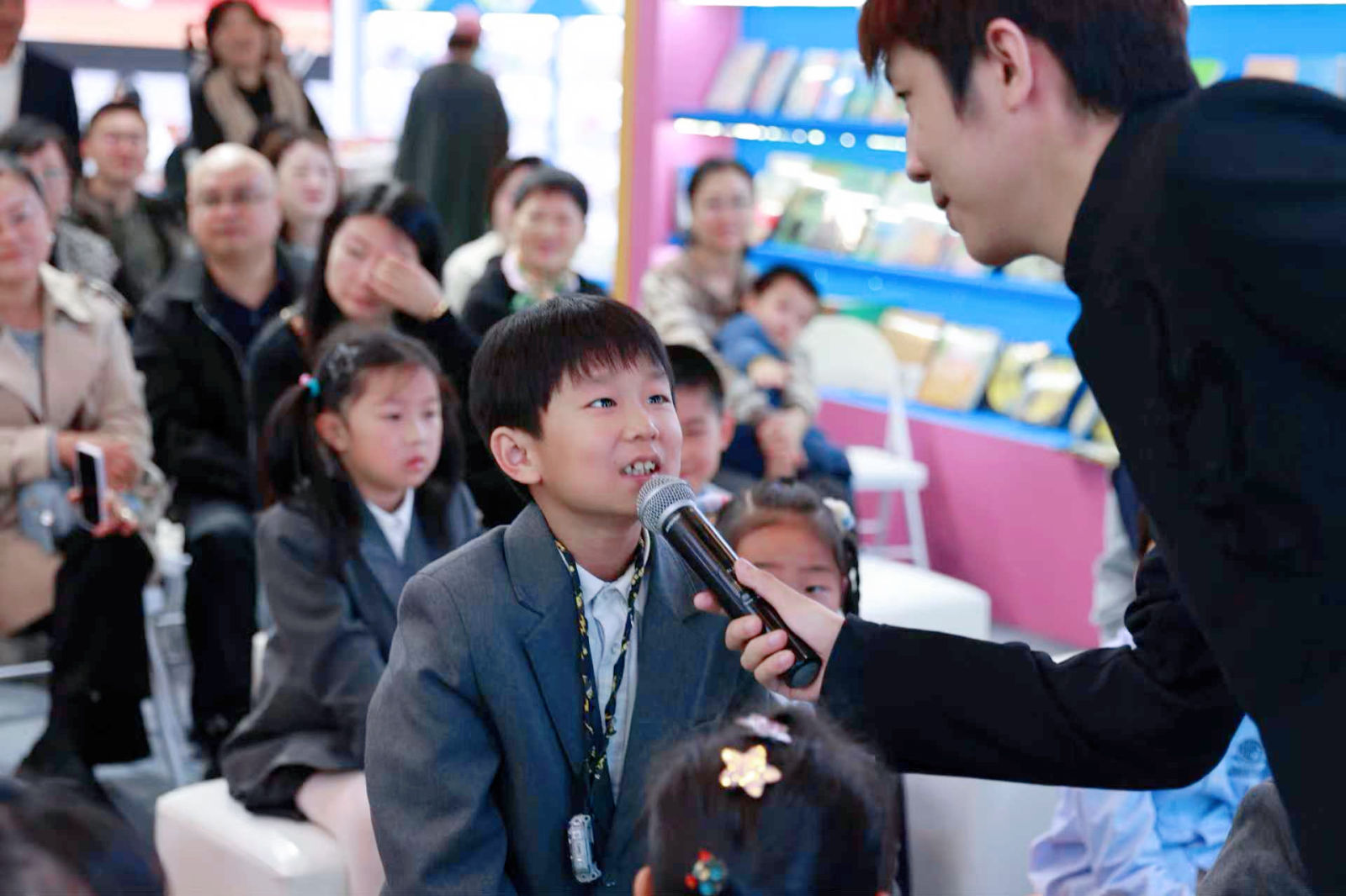 11月15日,《小童年 大世界》新书发布会在上海国际童书展世纪出版集团活动区隆重举行。资深教育专家,燎原双语总校长潘慧琴到场和20位小诗人热情互动,以“书是甜的,知识是甜的”为引,鼓励孩子们用自己独特的方式,书写属于他们的“小童年 大世界”。潘校长寄语道:“希望孩子们永远保持童心,永远带着好奇的、闪亮的眼睛去看世界,永远坚持爱看书的好习惯,把自己的想法记录下来,成为你独一无二的故事。”。本书主编单静老师现场展示了孩子们充满奇思的诗作手稿,小诗人们与观众展开关于“生命意义”的哲学对话,稚嫩而深刻的思考引发阵阵掌声。