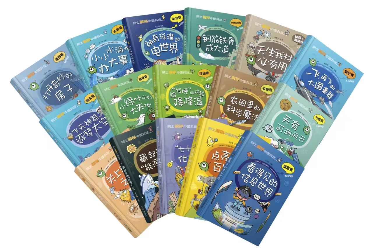 这部丛书已出版16册,内容包括环境、化工、交通运输、矿产、林草、农业、气象与气候、石油天然气、信息、医药卫生等不同领域。图书全面反映我国科技事业壮丽辉煌的发展历程、主要成就,面向小读者系统解锁我国科技发展中的节点、亮点。