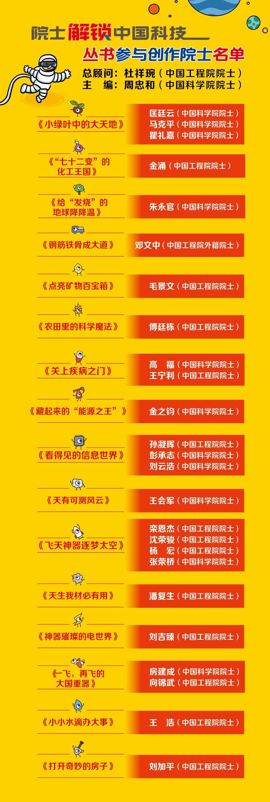 自策划之初,“院士解锁中国科技”丛书即坚持“让最懂科技的人讲科学”的理念,邀请活跃在科研一线的院士主笔,结合院士们的科研经历,生动介绍了200多位科学家的探索故事。