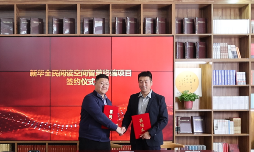 在与会嘉宾的共同见证下,双方代表正式签署战略合作协议,并同步启动了新华全民阅读空间智能终端项目。现场大屏呈现的动态启动画面,标志着智慧阅读新生态的正式启航。
