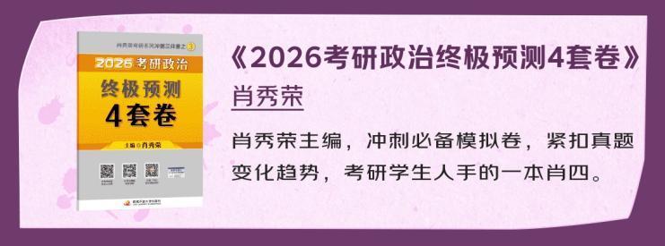 考研冲刺阶段,教辅资料的选择至关重要。对于2026届考研学子而言,12月正是冲刺提分的关键期,由考研政治权威专家肖秀荣主编的《2026考研政治终极预测4套卷》上线,作为无数考生的“考前救命书”,该书紧扣真题变化趋势,精准覆盖核心考点,从命题逻辑到答案解析都经过实战检验,堪称考研政治冲刺阶段的“标配资料”。
