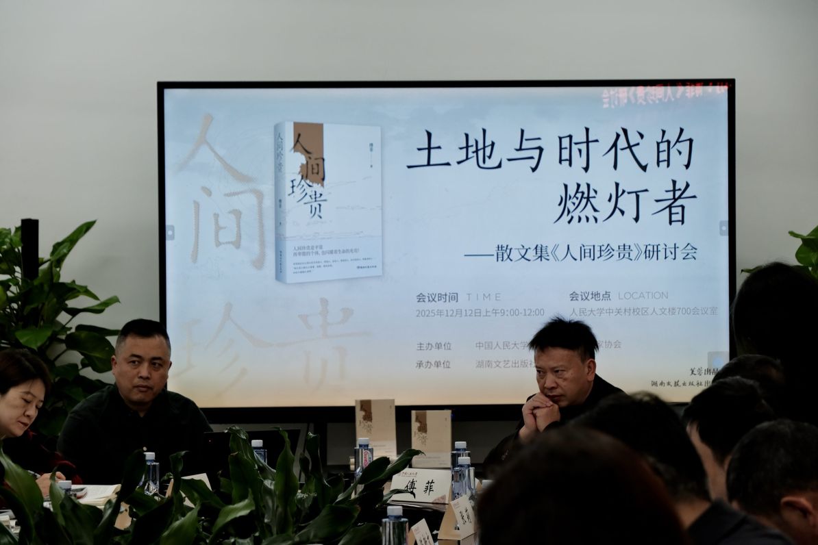 12月12日上午,由中国人民大学文学院、江西省作家协会主办,湖南文艺出版社、芙蓉杂志社承办的傅菲散文集《人间珍贵》研讨会在中国人民大学人文楼顺利举行。李一鸣、黄发有、徐可、周晓枫、张莉、俞胜、陈宏伟、张晓琴、饶翔、徐刚、刘汀、行超、张鹏禹等专家,江子、杨庆祥、陈新文等主办方领导及作者傅菲等人齐聚一堂,共同探讨这部聚焦乡土与普通人的散文佳作。