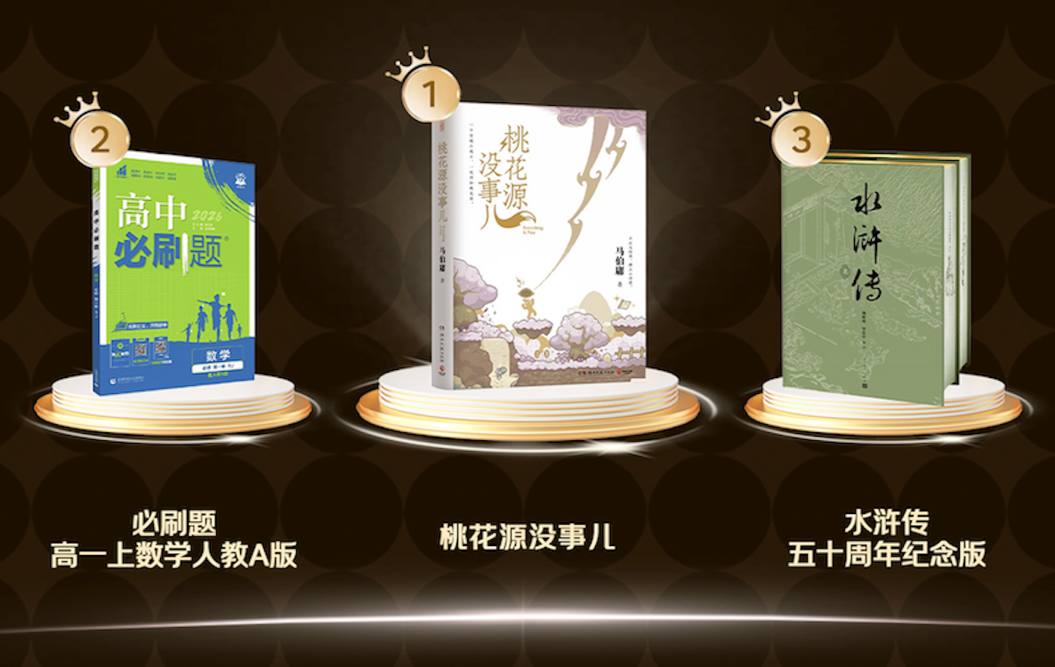 本次评选产生的“2025年度百大好书”榜单,涵盖了文学、社科、童书、教育、经管等多个门类,经全国读者票选,马伯庸“见微”系列新作《桃花源没事儿》荣膺榜首,其以灵动笔触解构经典意象,用奇幻外壳包裹职场现实,以小人物视角书写坚守与担当,展现出原创文学深厚的叙事魅力;《必刷题高一上数学人教A版》位列第二,贴合课堂教学需求,呼应了读者对实用教育内容的持续信赖;《水浒传(五十周年纪念版)》位居第三,以精缮典藏的创新形态,印证了经典文学穿越时代的不朽价值。