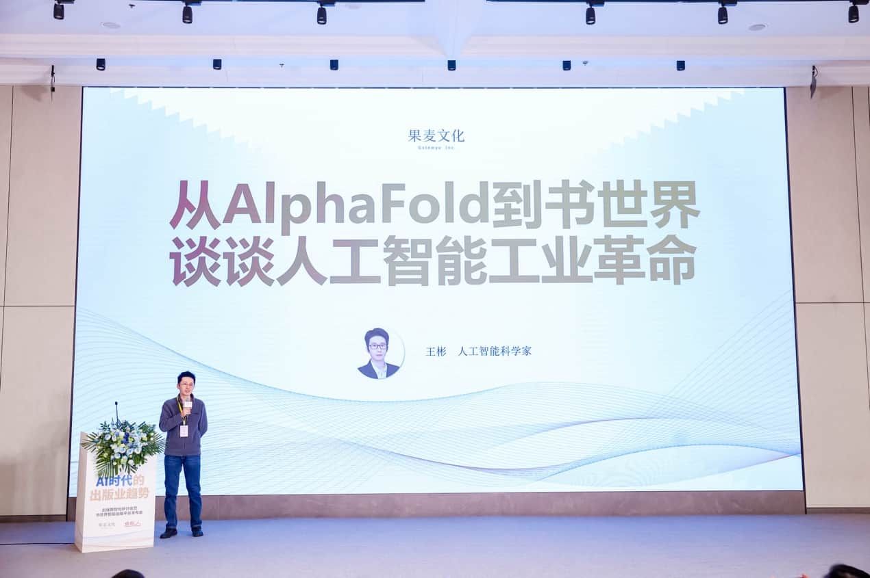 果麦数智战略顾问、人工智能科学家王彬教授则从技术视角,将人工智能比作“新一代工业革命的核心引擎”。他通过AlphaFold颠覆医药研发等案例,揭示AI对传统行业的颠覆性价值,并指出:“人工智能就和过去的蒸汽机、交流电、互联网一样,它会引起一场新的工业革命,出版行业与其他行业一样,终将通过AI实现效率与创意的双重升级,而‘书世界’正是这场变革中的一股清流。”