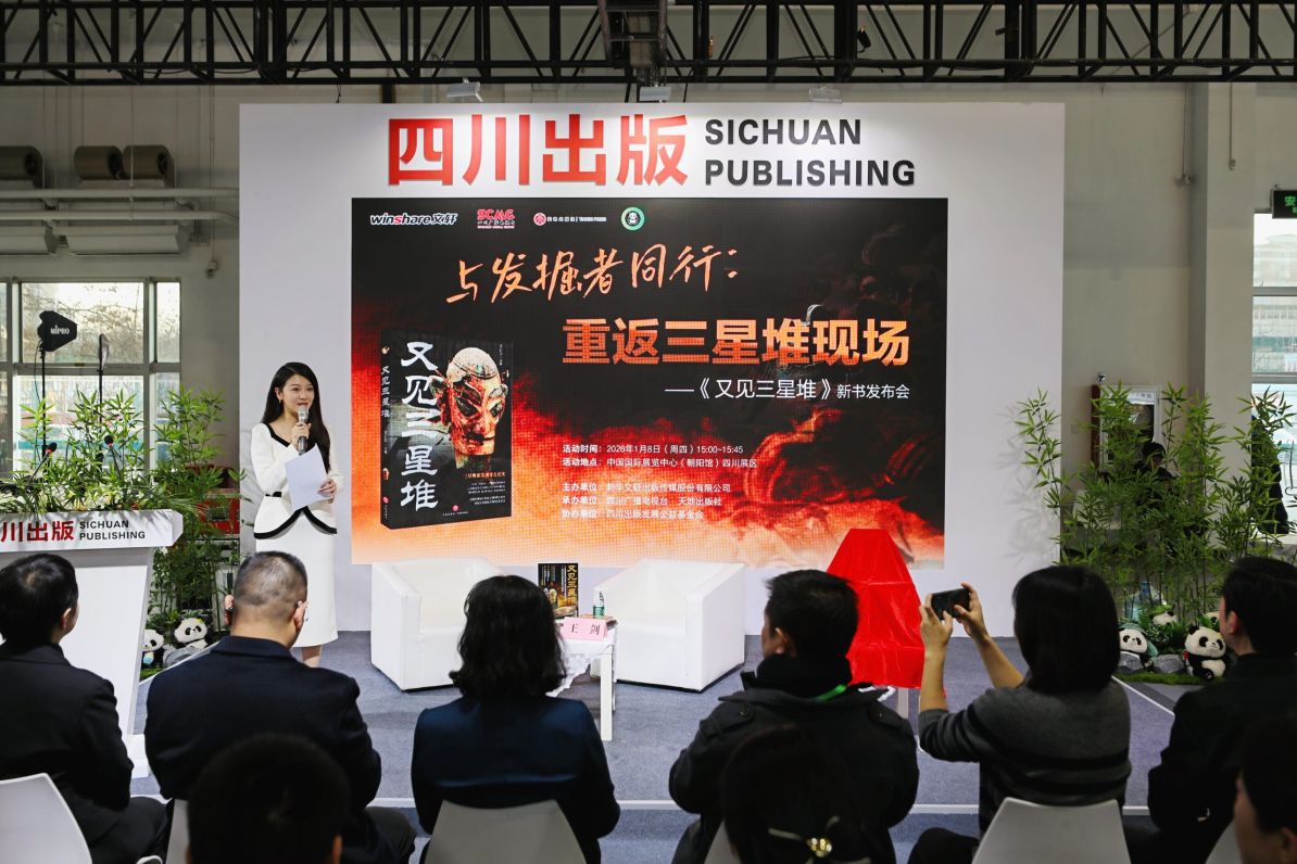 1月8日下午,第38届北京图书订货会上,《又见三星堆》新书发布会隆重举行。本次活动以“与发掘者同行:重返三星堆现场”为主题,由新华文轩出版传媒股份有限公司、四川广播电视台、四川出版发展公益基金会、天地出版社等单位共同举办。中国出版协会理事长邬书林,四川广播电视台总编辑王红芯,新华文轩出版传媒股份有限公司党委委员、副总经理胡巍,四川出版发展公益基金会秘书长谭清洁,天地出版社社长杨政等领导和嘉宾出席,共同见证这部聚焦三星堆新一轮考古发现的纪实作品的隆重面世。活动特邀曾参与过《三星堆新发现揭秘》直播项目的四川广播电视台主持人王楚涵担任主持。