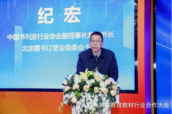 纪宏在致辞中指出,高等教育教材行业合作大会对于推进大中专教材领域高质量发展具有重要意义,为教材出版发行行业提供了宝贵的交流学习机会,广大教材经销单位和发行单位在“十五五”时期要不断深化融合发展,持续提升教材发行服务的水平和能力。