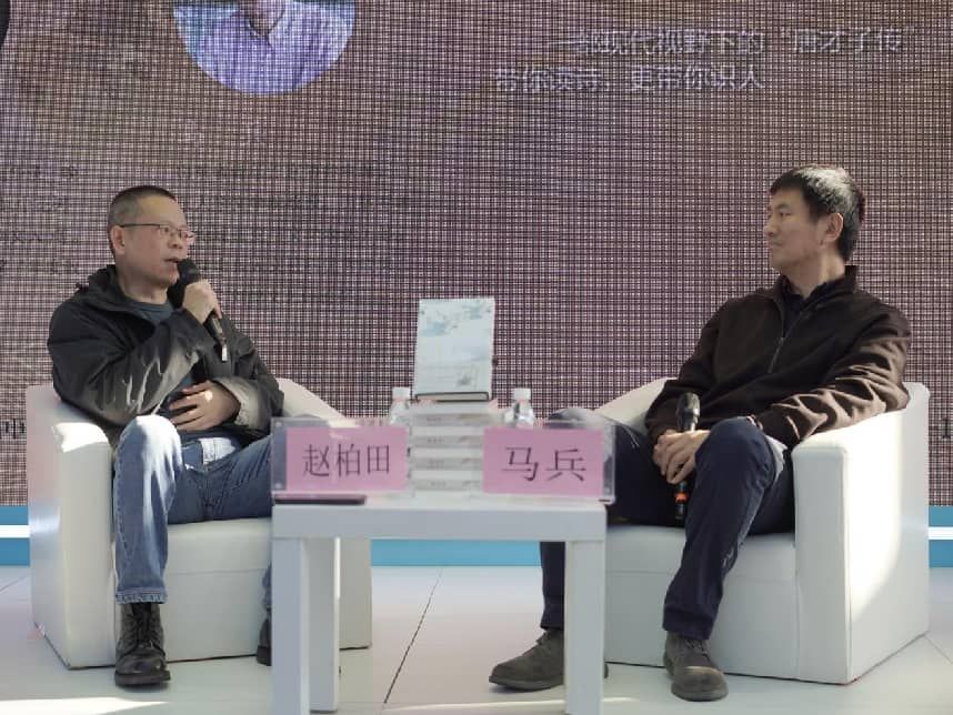 在现场,作者赵柏田和山东大学教授马兵就《唐诗传》的创作缘起、选材标准、创作特点等,进行了深入的交流。