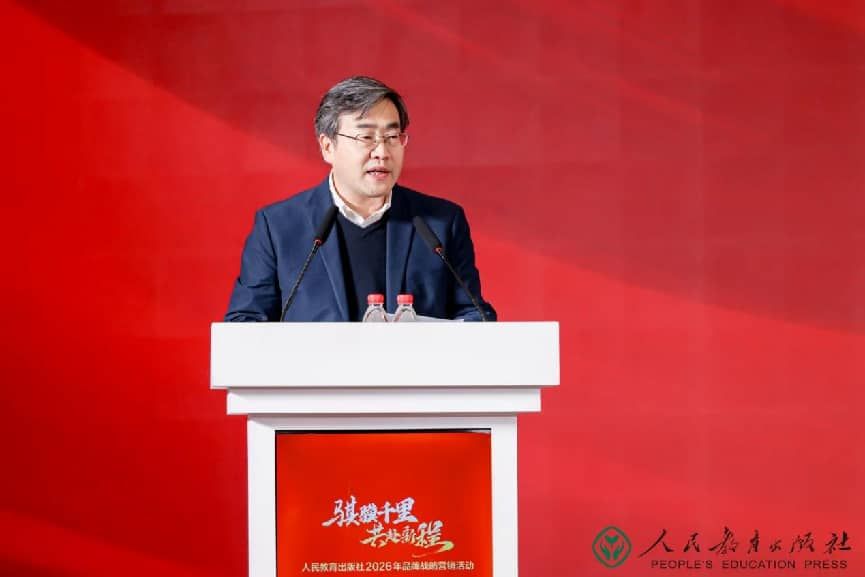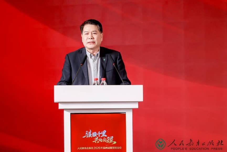 1月8日,人民教育出版社2026年品牌战略营销活动在北京举行。本次活动以“骐骥千里 共赴新程”为主题,全面回顾了2025年人教社在教育出版、品牌建设、融合创新等领域取得的丰硕成果,重磅发布2026年度重点产品与合作项目,并对过去一年中在人教社品牌发展、业务拓展、文化传播等方面作出突出贡献的单位和个人予以表彰。来自全国30余个省(区、市)的出版发行单位相关负责人、媒体代表、合作伙伴以及人教社领导班子等近500人齐聚一堂,共话合作、共启新程。