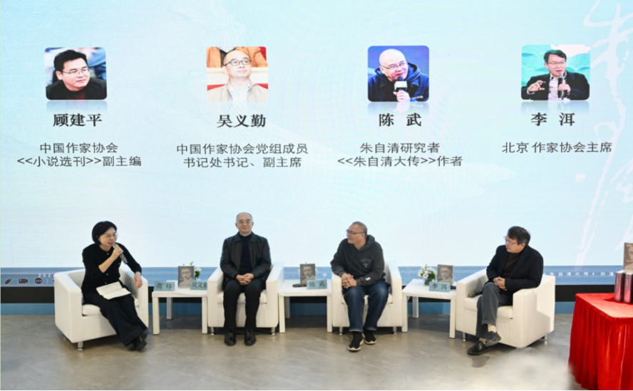 2026年1月8日上午,北京图书订货会现场暖意融融,“弦歌不辍,风骨长存——走进《朱自清大传》的温雅与傲骨”品读会如期举行。作者陈武与中国作家协会副主席吴义勤、北京作家协会主席李洱、<<小说选刊>>副主编顾建平与展开深入交流座谈,共探朱自清的精神世界。