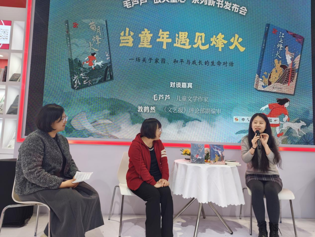 2026年1月8日下午,在北京图书订货会上,中国科学技术出版社举办了儿童文学作家毛芦芦新书“战火童心”系列(《菊月烽火》《江上烽火》)发布会。活动以“当童年遇见烽火——一场关于家园、和平与成长的生命对话”为主题,通过解读两部聚焦抗战年代少年成长的作品,引导孩子回望历史、珍惜和平,收获直面困境的勇气与担当。