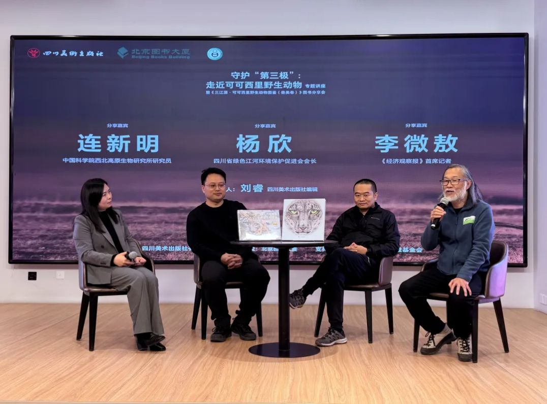 2026年1月9日、10日,由四川美术出版社主办、四川出版发展公益基金会支持的“守护‘第三极’:走近可可西里野生动物专题讲座暨《三江源·可可西里野生动物图鉴(兽类卷)》图书分享会”,分别以线上直播和线下分享的形式在先知书店和北京图书大厦举行。