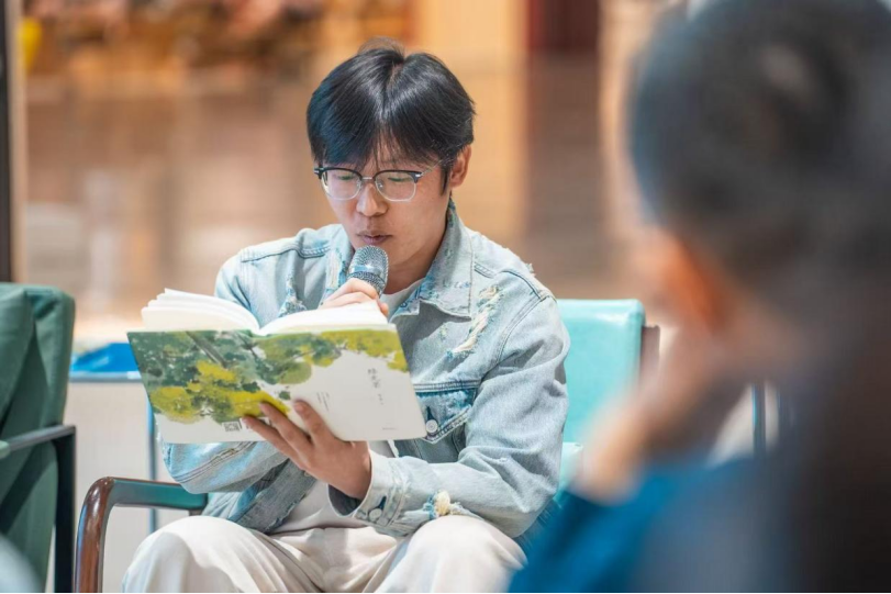 文字是沉默的诗,而朗读是流动的画。在文学声音剧场环节,明天出版社的孙亚飞、张恒硕,青岛大学的学生涵咏,以声音为媒介,赋予文字新的生命。《豆蔻年华》的青春昂扬、《蝉的行李》的细腻灵动与《绿光芒》中珍贵的童年回忆……一段段精选篇章,在不同声音的诠释下,如光影流转,似草木生长,展现出文字背后丰富的情感层次与想象空间。