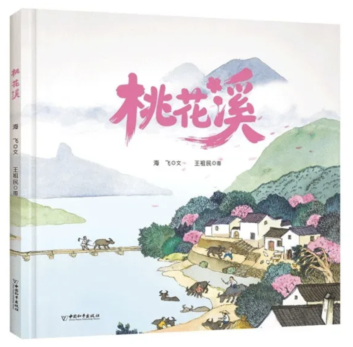 《桃花溪》由中国出版工作者协会原副主席、资深出版人、著名作家海飞和画家、童书编辑王祖民共同创作,讲述的是风光秀美的桃花溪,却不时发大水:无声无息的文大水与来势汹汹的武大水。那年主人公随爸爸在文大水中救下小牛阿福,朝夕相伴。端午时节,也是桃花溪的“轧角节”。鼓乐声里,牛儿们渡溪、轧角,热闹又欢乐。小牛阿福吼退大青牛、角斗黑公牛,意外夺得牛帅之名。可在桃花溪遭遇百年不遇的武大水中,阿福助我脱险,被卷入激流中。后来,上游建水坝,村里修石桥,桃花溪再无大水肆虐。
