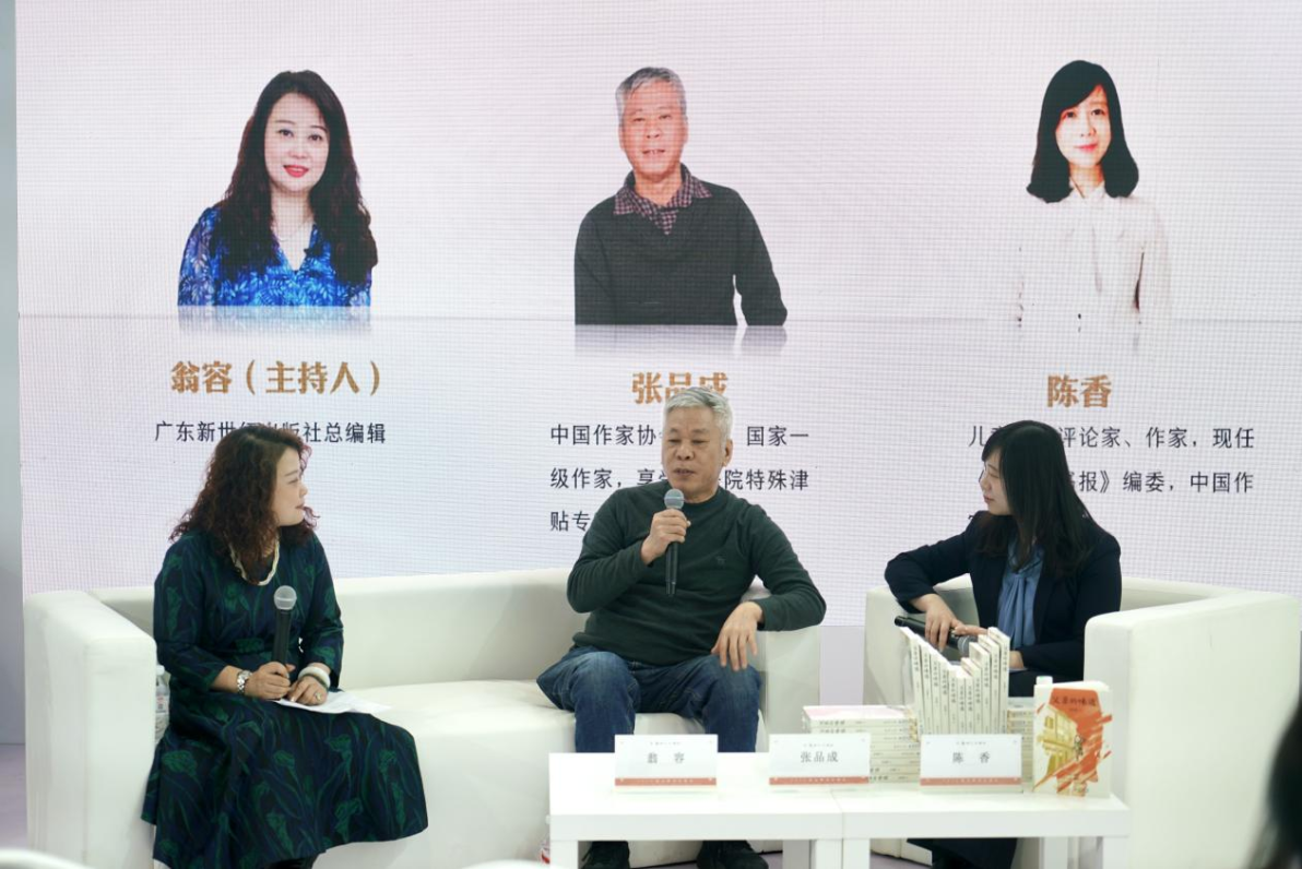 揭幕仪式后,一场聚焦“红色历史的当代表达与儿童文学的信仰传递”的深度对谈如期展开,由广东新世纪出版社总编辑翁容主持,两位重磅嘉宾围绕《父亲的味道》的创作故事、历史内涵与教育意义展开分享,为现场观众带来一场思想与情感的盛宴。