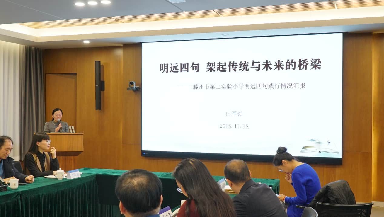 1月18日下午,“明远四句”读书践行座谈会在北京师范大学举行。北京师范大学资深教授、中国教育学会名誉会长顾明远,教育部原国家副总督学、中国教育学会原常务副会长郭振有,全国政协委员、北京师范大学国家高端智库教育国情调查中心主任张志勇,海南省教育研究院原党总支书记、副院长李洪山, 山东教育社原总编辑、知名教育学者陶继新,枣庄三中原校长、山东创新教育研究院副院长樊兴举,山东创新教育研究院常务副院长崔秀梅,齐鲁师范学院信息科学与工程学院院长杜建彬,山东教育出版社相关同志,以及来自海南、广东、 江苏、安徽、山东、河南、河北、宁夏、内蒙古等省(自治区)的33所首批读书践行基地的负责人出席了活动。座谈会由齐鲁师范学院、山东创新教育研究院、山东教育出版社联合主办。会议由张志勇主任主持。
