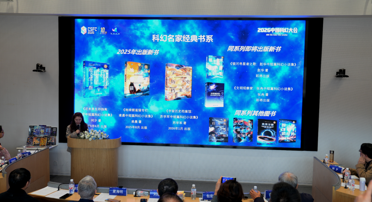 清华大学与中国科学技术出版社联合培养博士后陈若谷发布出版社年度科幻出版成果,涵盖“科幻名家经典书系”“世界科幻名著经典书系”“科幻研究丛书”“科幻星系丛书”四大系列,推出《刘慈欣少儿科幻系列·新版》《龙脊上的重庆》《破碎星球》《异莽时空历险记》等重磅作品,同时预告《四时闻歌:中国式科幻的自然浪漫》《百年中国科幻史论》《科幻小说在中国的译介及影响》等重点图书即将上市。