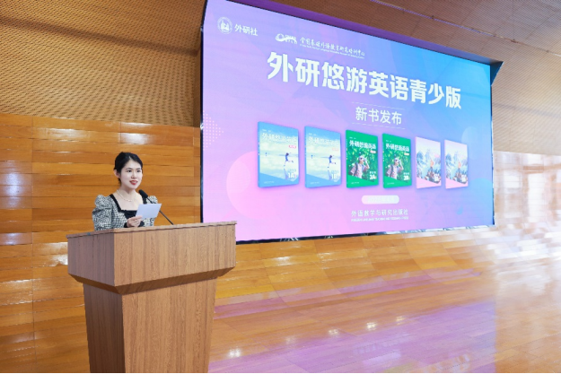 随后,通过观看一段宣传片,与会领导、专家、校长和老师们共同见证了《外研悠游英语青少版》的发布。这套教程是外研社专为中国初中段英语学习者量身定制的综合性英语教程,紧扣新课标要求,学习目标明确,从中国学生的语言学习特点及中国教师的教学实际出发,科学设计教学内容,全方位提升学生的核心素养。