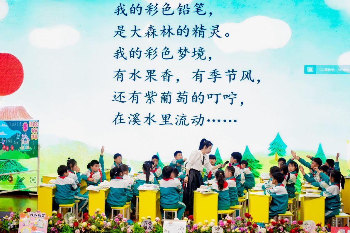 中国作家协会原副主席、课文《彩色的梦》《陀螺》的作者高洪波带来“童诗的欣赏与写作”专题讲座,他凭借深厚的文学底蕴和不泯的童心,带领师生领略童诗之美,分享作品创作背后的故事,鼓励孩子们用诗歌表达内心的情感与想法,让现场师生深受启发。