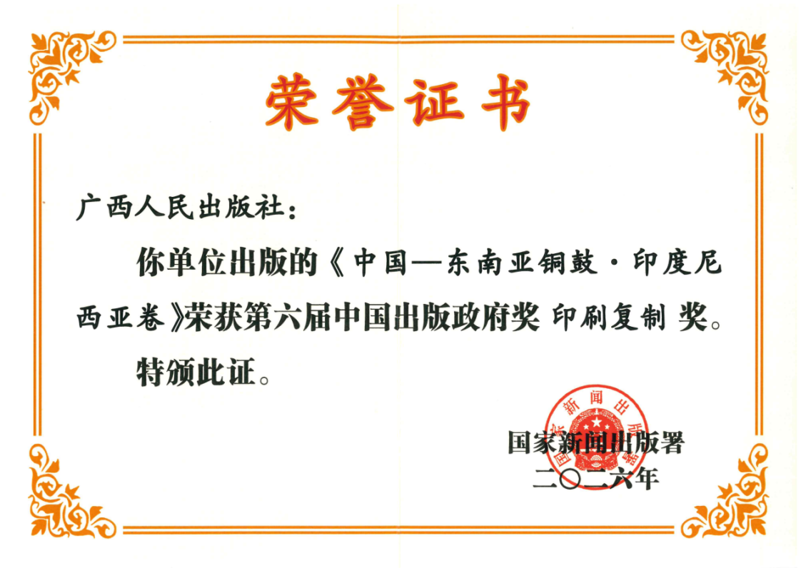 近日,国家新闻出版署公布第六届中国出版政府奖获奖名单,由广西人民出版社出版的《中国—东南亚铜鼓·印度尼西亚卷》成功斩获印刷复制奖。这是广西人民出版社深耕精品出版、服务中国—东盟文化交流取得的又一国家级重磅成果,彰显了广西人民出版社在大型学术图典出版与高端印制品质把控上的过硬实力。