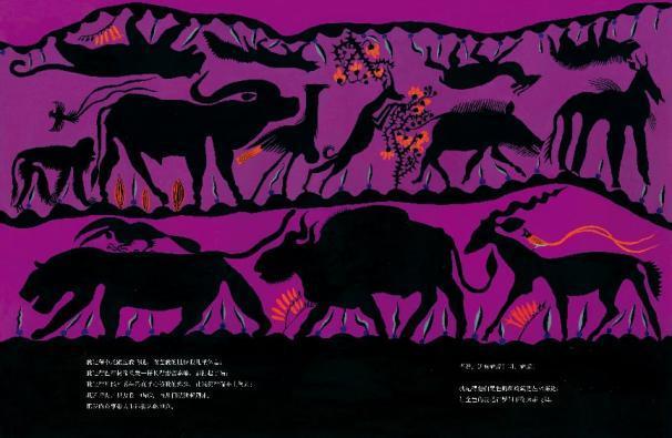 与传统自然绘本不同,罗杰・米罗没有用写实的绿树青草去描绘大地,而是以极具象征感的色彩与符号,构建出一个诗意又震撼的视觉世界。