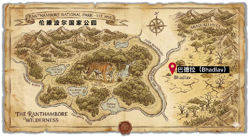 夏尔贾汉(Sherjahaan)的原型是印度一个叫作巴德拉(Bhadlav)的地方,毗邻印度著名的老虎保护区——伦滕波尔国家公园。