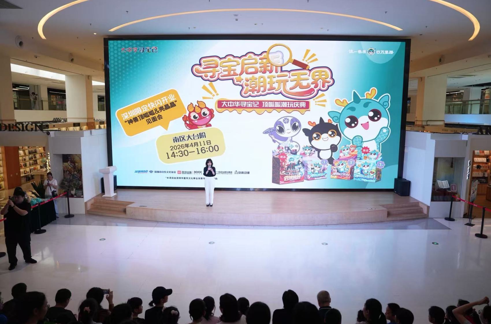 4月11日,快闪店开业暨神兽见面会启幕,深圳书城文化(集团)有限公司副总经理王胜华、二十一世纪出版社集团阅读推广事业部总经理顾学美莅临,嘉宾剪彩、互动游戏等环节人气爆棚,快闪期间还有多重福利。4月11日—6月7日,《大中华寻宝记》深圳限定快闪开业,快闪期间将有图书及周边上新、精彩活动、买赠福利等多重惊喜。在这里,可以一站式打卡“大中华寻宝记”全系列图书及文创,沉浸式体验寻宝乐趣。