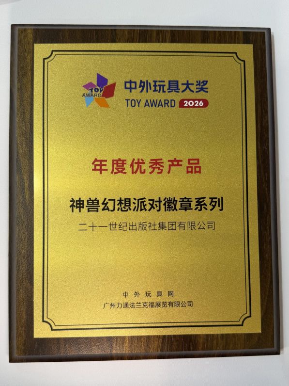 4月8日下午,2026中外玩具&潮玩大奖颁奖典礼在深圳国际会展中心举办,现场揭晓多项荣誉。由上海京鼎动漫科技有限公司策划、二十一世纪出版社集团有限公司获权出品发行的大中华寻宝记•“神兽幻想派对徽章系列”获“年度优秀产品”,“山海有灵徽章系列”获“年度潜力产品奖”。