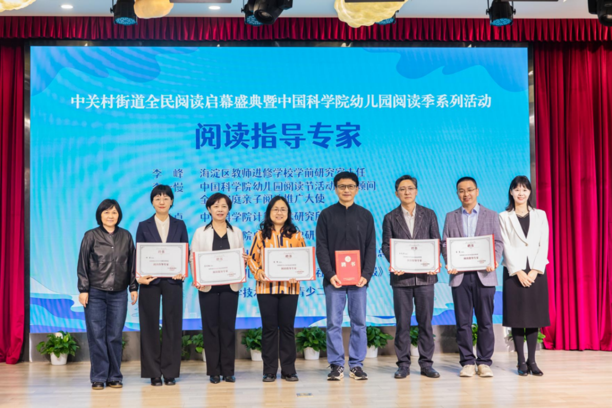 开幕式上,中关村街道办事处副主任黄宇玲发表致辞,向到场嘉宾介绍“书香中关村”开放式街道图书馆项目,并和校、地、企、社、幼多方代表共同参与中关村街道暨中国科学院幼儿园阅读联盟成立启动仪式。黄宇玲副主任与中国科学院幼儿园副总园长庞晓琴还为6名专家颁发“阅读指导专家”聘书,为辖区全民阅读与亲子共读提供精准支持。