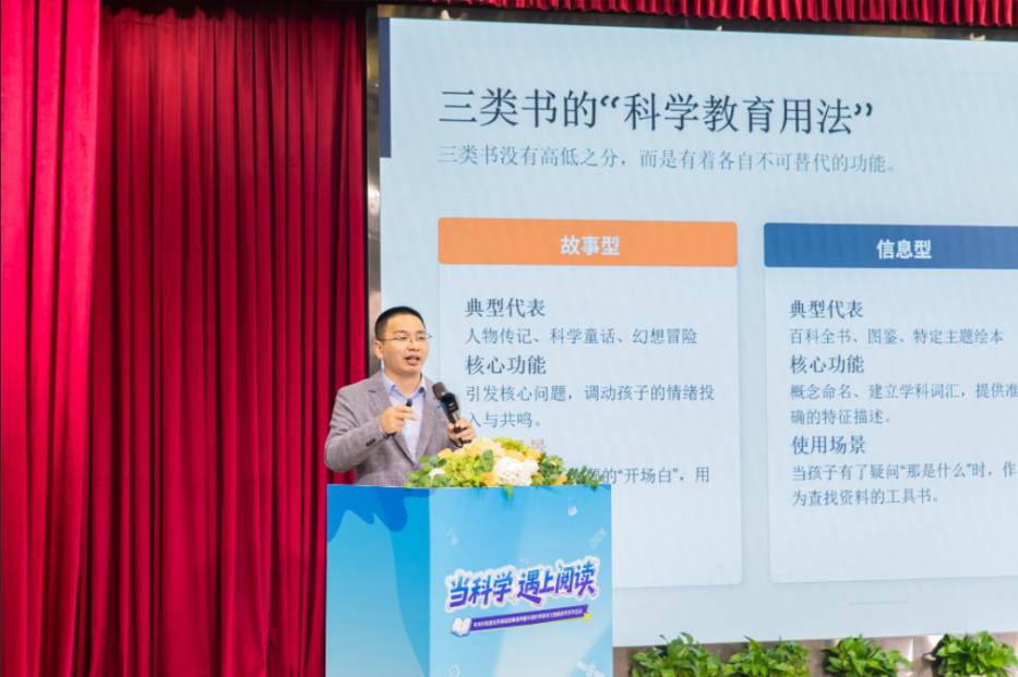 中国科学院自然科学史研究所研究员、文津图书奖得主李亮带来题为《在故事里种下科学的种子》的主题讲座。李亮的学术轨迹横跨计算机、物理与科技史多个领域,他结合自身独特的跨界经历,分享如何将宏大的科学史转化为孩子易于亲近的故事。他指出,读科学史就是为孩子绘制一张“科学是怎么长出来的”寻宝地图,让孩子在故事中理解科学发现的来龙去脉,培养追问“为什么”的思维习惯。