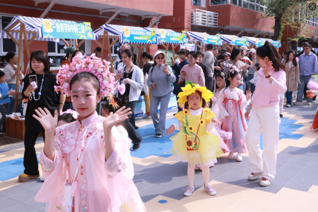 由中国科学院幼儿园孩子们带来的《十二花神》主题游园活动成为全场焦点。身着十二种花类服饰的小“花神”们穿梭于各个活动区域,在巡游展示中向小伙伴科普花卉知识,还不时为“科学小达人”送上神秘礼物。在花香与书香交织的氛围中,孩子们既感受了传统文化的韵味,又收获了科学探究的乐趣。