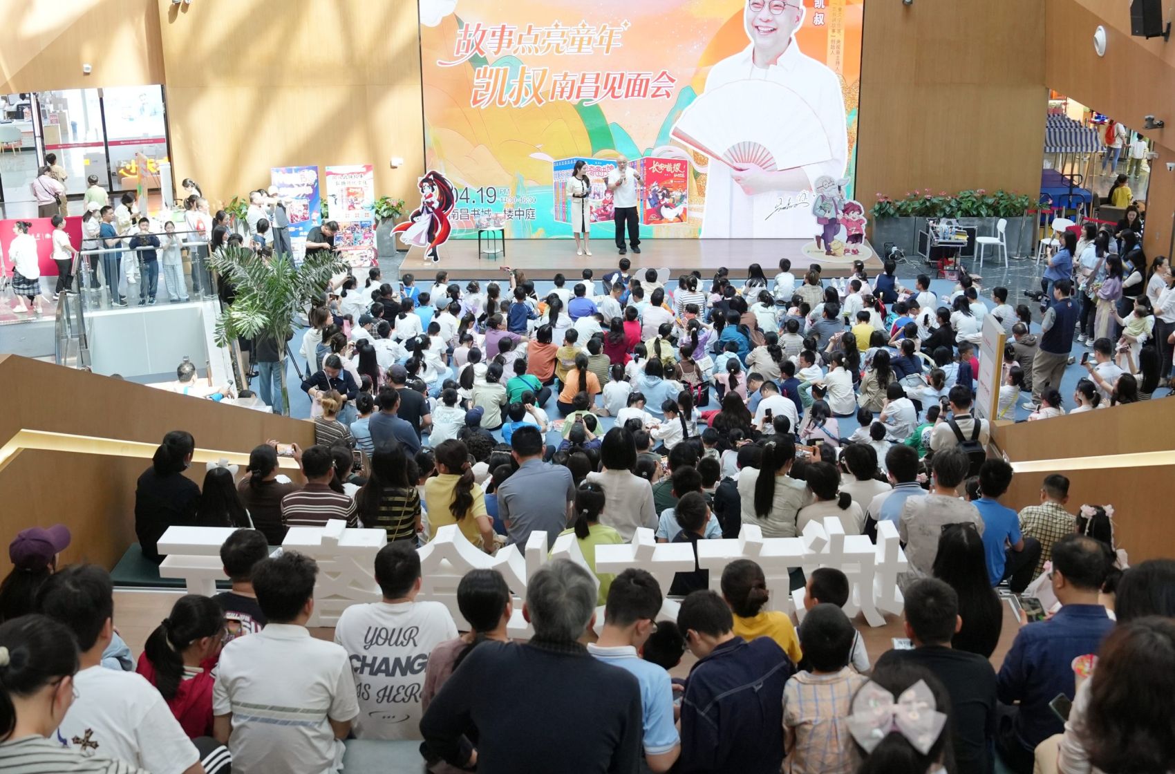 4月19日下午,全民阅读大会重要系列活动之“故事点亮童年•凯叔南昌见面会”在南昌书城成功举办。本次活动聚焦人工智能时代背景下儿童阅读的价值重塑与核心素养培养,吸引了数百组家庭到场参与。现场人气爆棚、互动深入、气氛热烈,掀起一阵全民阅读热潮。