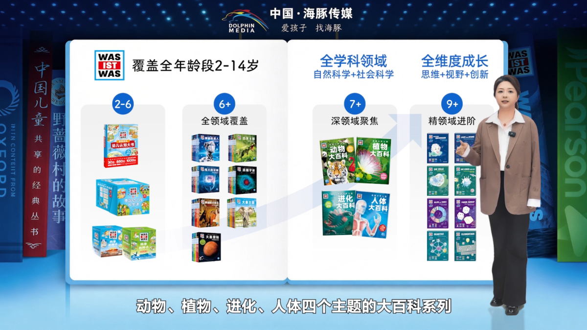 海豚图书事业部总经理李欣分享了多个重点系列:源自德国的国宝级百科全书“WAS IST WAS”(德国少年儿童百科知识全书)系列已由海豚引入中国19年,2026年将推出动物、植物、进化、人体四大主题百科。