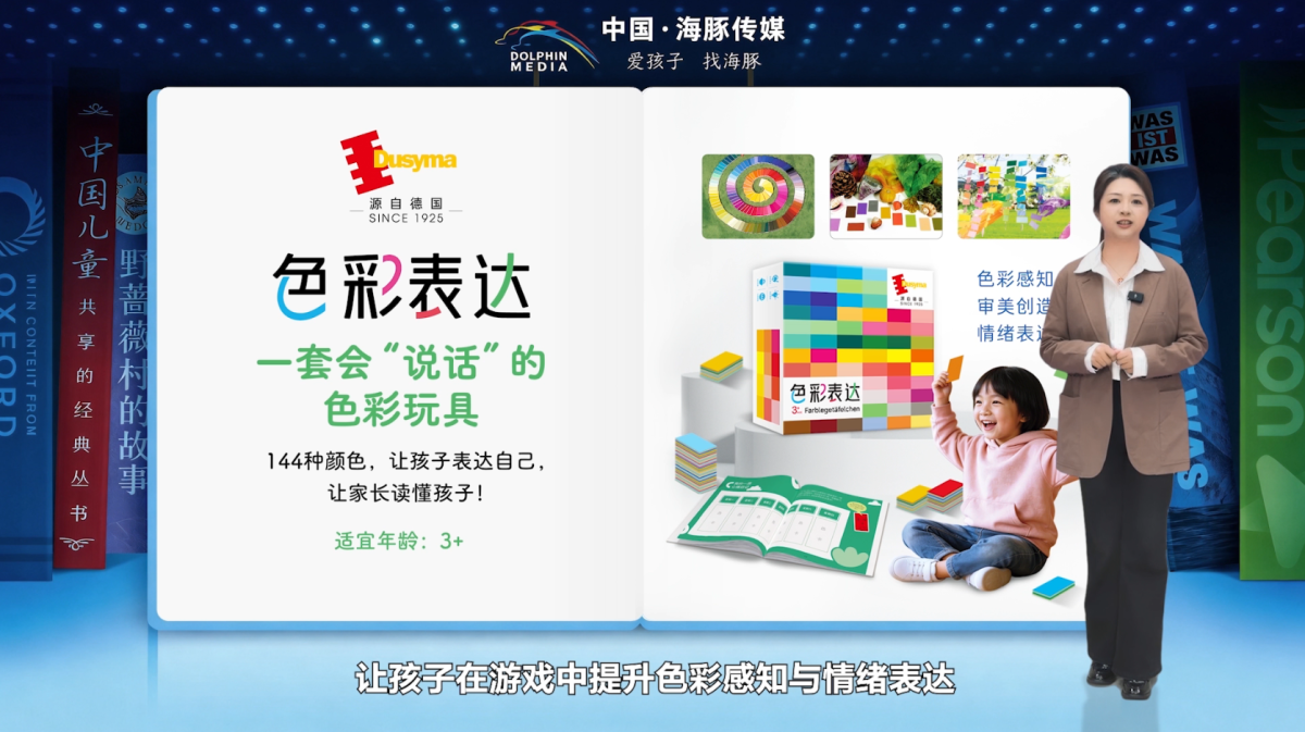 在深耕童书的同时,海豚传媒不断拓展产品边界,让孩子的成长“不止于读,更在于玩”。本次发布会推出了一系列创意型玩具产品:联合德国Dusyma打造的《色彩表达》,用144张色卡帮助孩子在游戏中提升色彩感知与情绪表达。