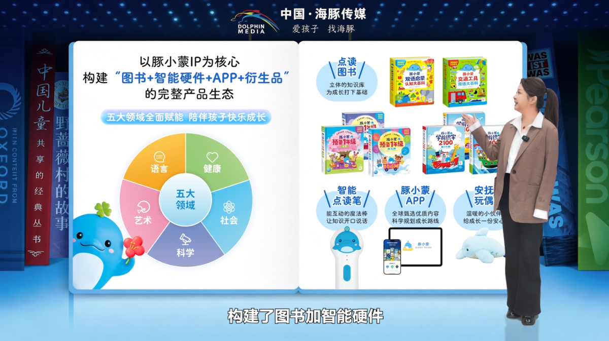 本次发布会通过海豚童书与心喜阅童书官方视频号、小红书平台进行现场直播,面向行业伙伴与千万家庭,正式发布年度重磅新品矩阵,全面呈现“内容+科技+AI陪伴”的儿童阅读、学习与成长陪伴新方案。