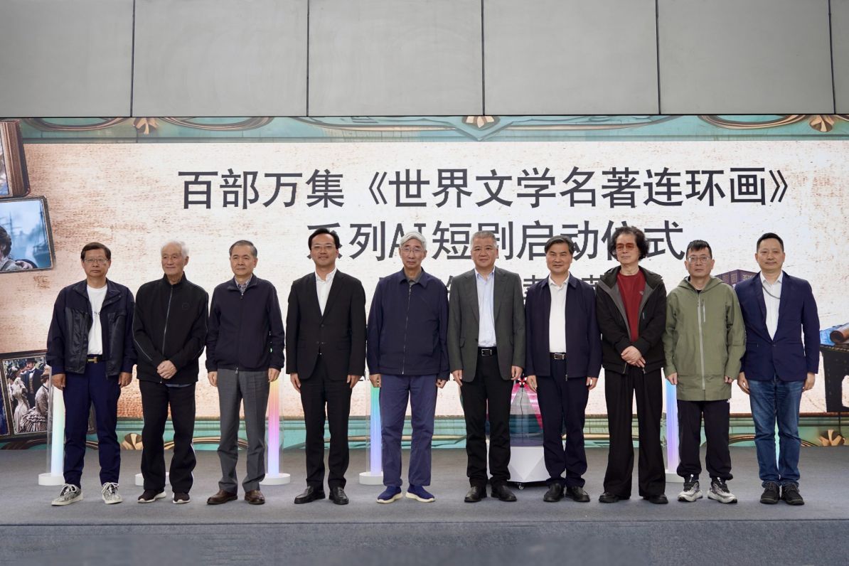 4月23日,由浙江人民美术出版社与浙江晟喜华视文化传媒有限公司携手打造的“百部万集《世界文学名著连环画》系列AI短剧”项目启动仪式在武林921数字文化产业园成功举办。